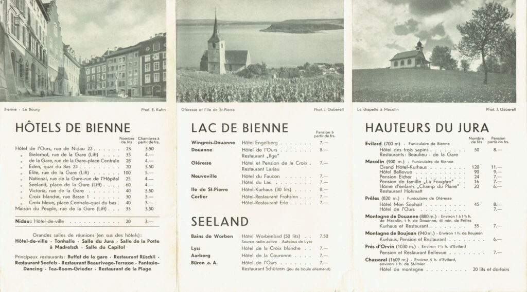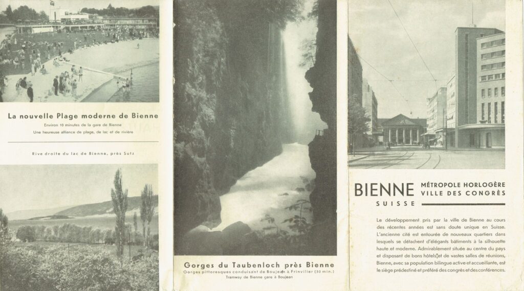 Dépliant promotionnel touristique du lac de Bienne, entre 1932 et 1934. Document Collection Sikey.
