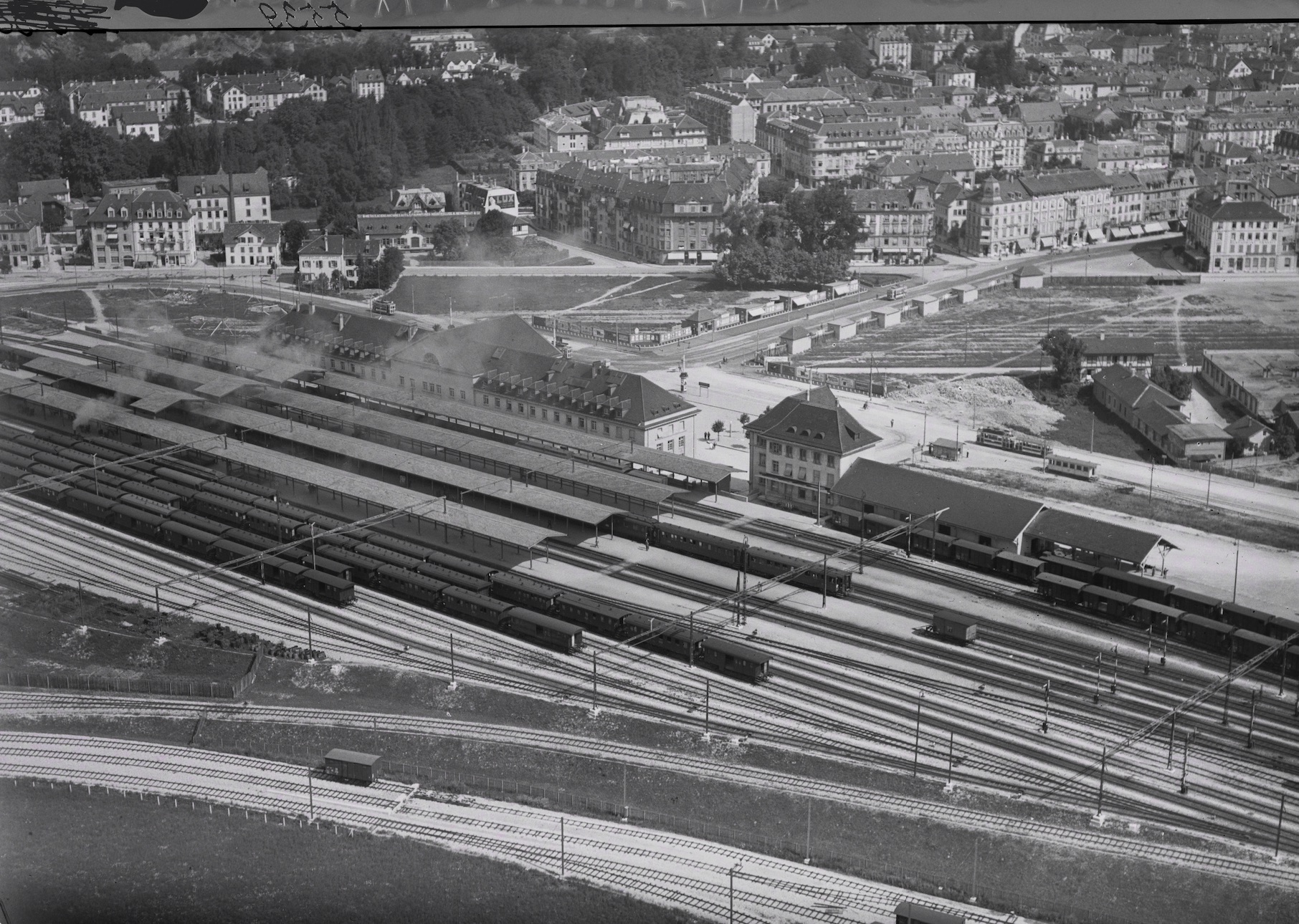 Modernisation et extension urbaine durant la période de « Bienne la Rouge ». La nouvelle gare et le quartier de la gare en 1927.
