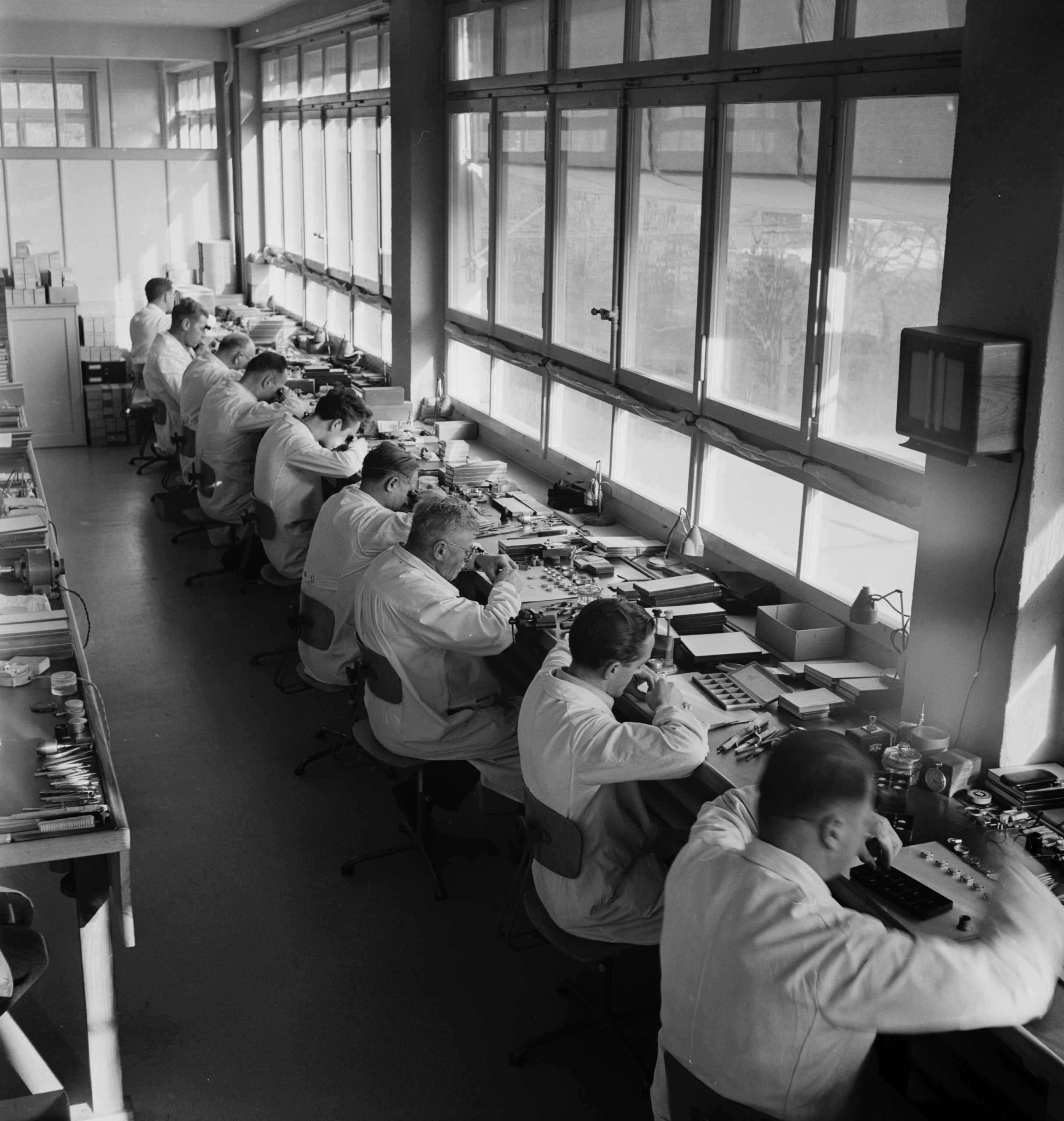La fabrique de montre Selza, à la rue Faucon 28, en 1952. Photographie Comet Photo AG (Zürich). Fonds ETH. Libre de droits.